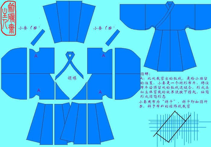 上衣:依照江永《深衣考》之深衣图及以上尺寸裁成。