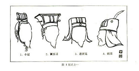 这是一种束在头顶的小冠,小冠多为皮制,形如手状,正束在发髻上,用簪贯其髻上,用緌系在项上,武官壮士则多饰缨于顶上,称为垂冠,初为宴居(在家便装)时戴,后通用于朝礼宾客,文官,学士常戴用。
