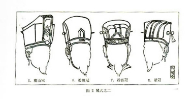 以上所举是历代常用的主要冠式,在远古时,据记载还有缁布冠、周弁、皮弁,爵弁、毋追冠、章甫冠、巧士冠、却非冠,汉代还有樊哙冠、建华冠、术士冠等等,这些冠有的冠名改为上述的冠名,有的很少被延用。