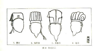 以上所举是历代常用的主要巾式,其他巾式还不少,但不常用,还有治五巾,云巾、方巾,四周巾、老人巾、史巾、皂隶巾,汉巾、唐巾等等。