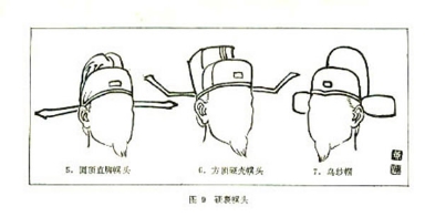这是一种硬裹的巾帽,用铁丝或藤草编成内型的硬壳,再糊绢或罗,并涂于黑漆,外型方而隆起,左右两脚用铁丝制成,并糊漆纱,向两侧乎伸或上翘,为宋代官员所好戴,宋代帝王也常戴用,但其两脚平直而长,向左右平伸,长至二尺。在造型时可参考采用。