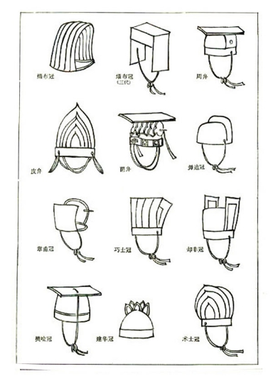 以上所举是历代常用的主要冠式,在远古时,据记载还有缁布冠、周弁、皮弁,爵弁、毋追冠、章甫冠、巧士冠、却非冠,汉代还有樊哙冠、建华冠、术士冠等等,这些冠有的冠名改为上述的冠名,有的很少被延用。